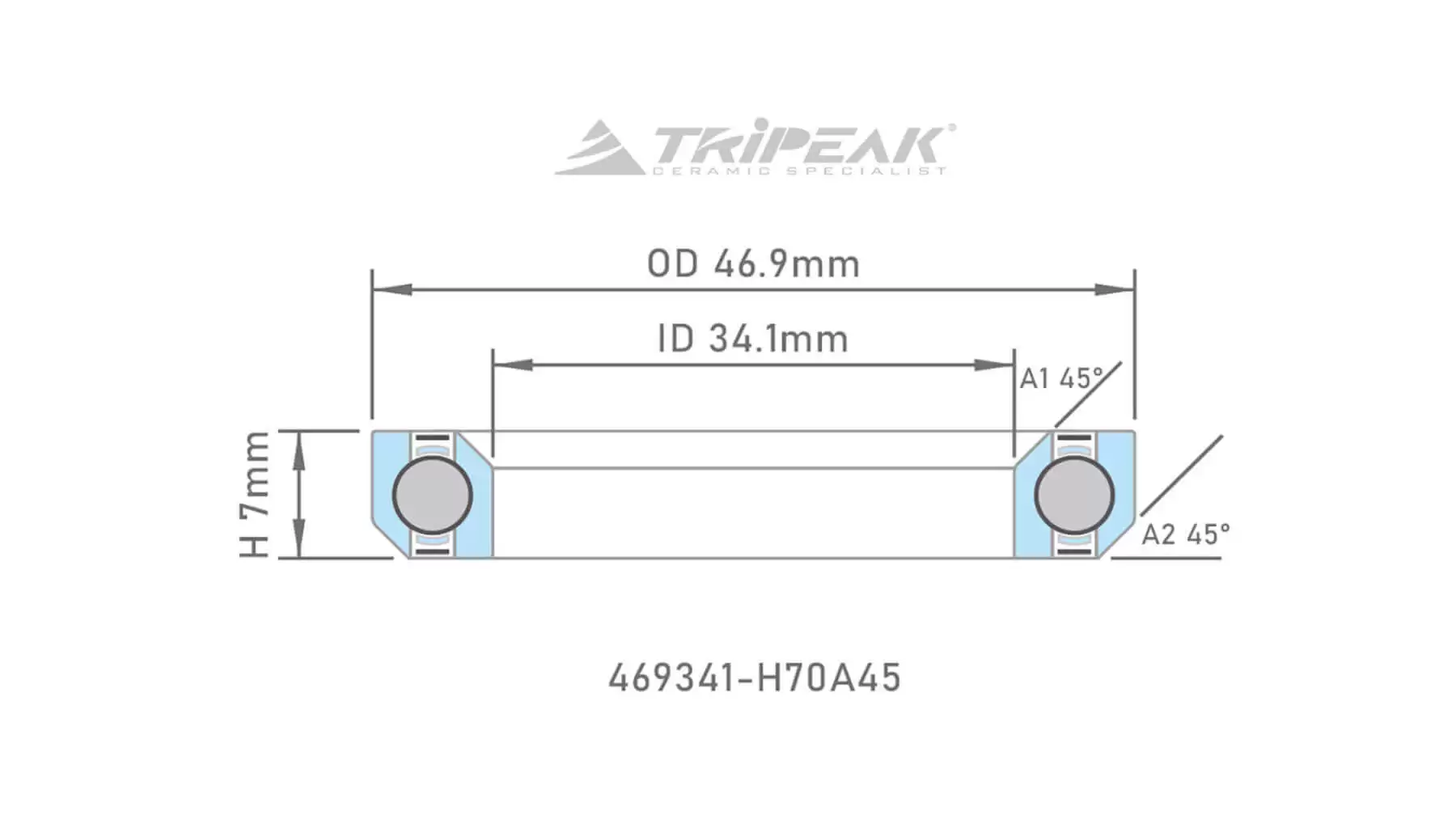 Bạc đạn chén cổ Tripeak, bạc đạn steel, có phủ lớp oxide coating đen (OD:46.9xID:34.1xH:7 xA:45°/45°)