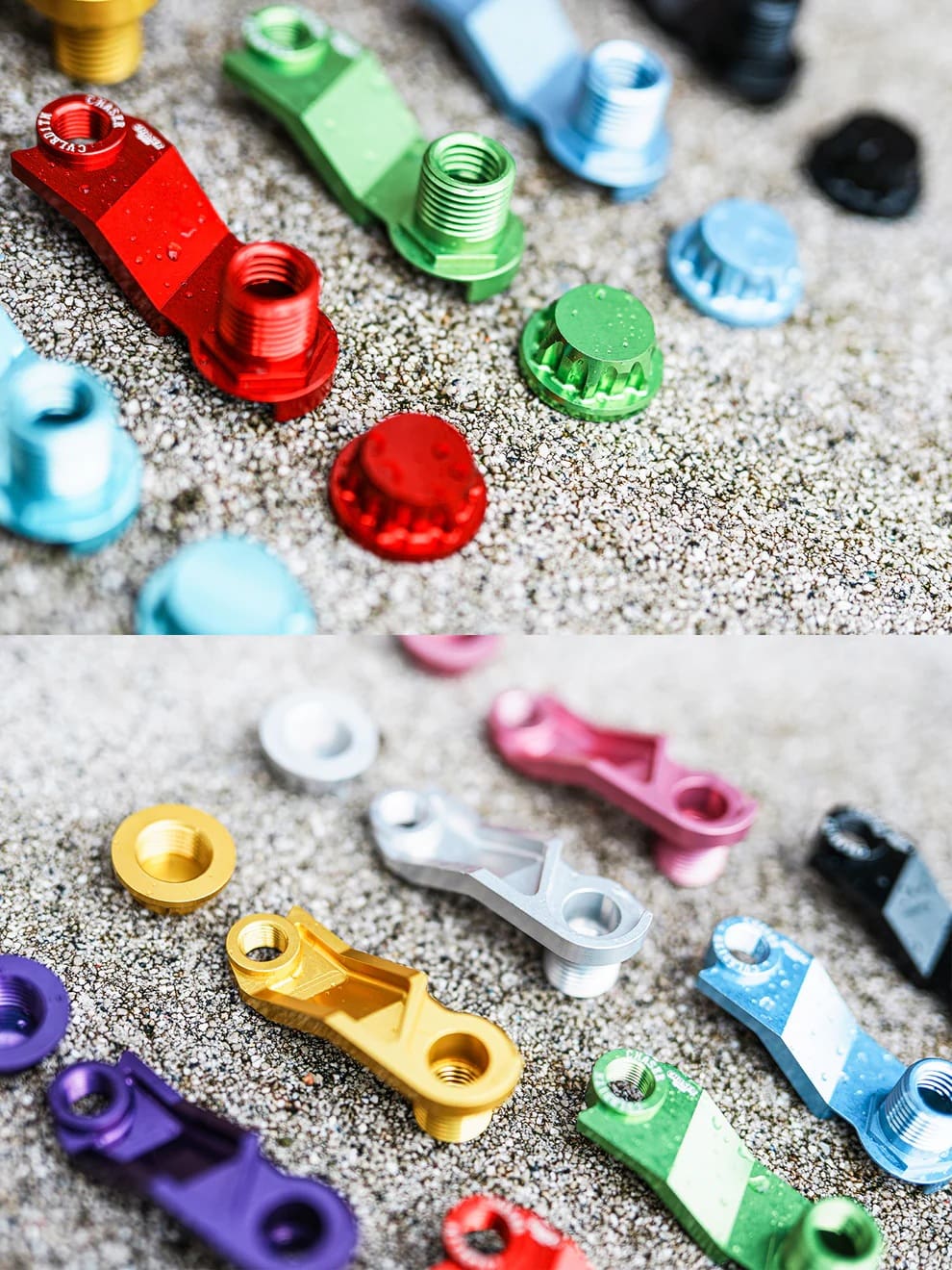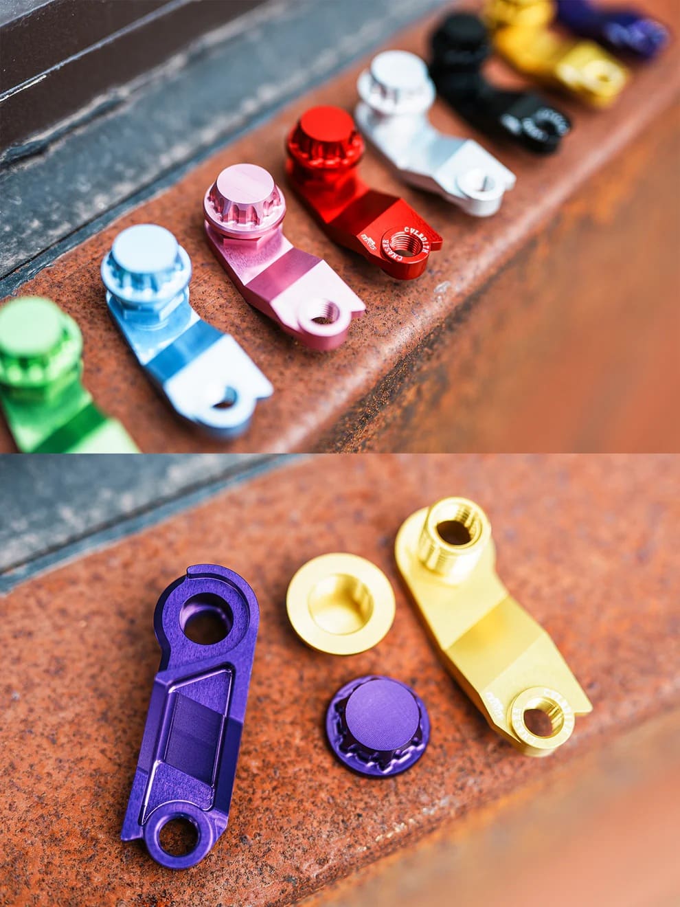 Full CNC machining, using high-strength and lightweight 7075 aluminum alloy with an independent design. Developed based on most riders’ preferences for shape, function, and color matching. From drawing to final product, it has undergone multiple screening and testing processes. The surface is finely polished before anodizing for coloration.