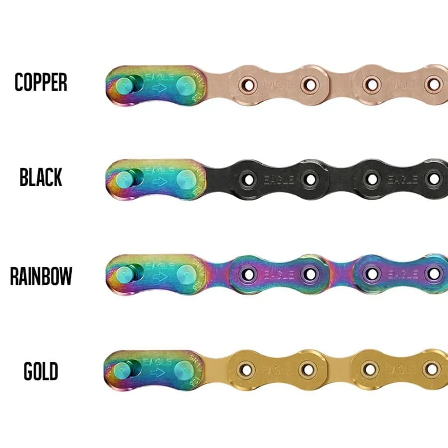 Hệ thống mạnh nhất là xích không có mắt xích yếu. Mắt xích Eagle có bán kính trơn, không có cạnh sắc hoặc vát, giúp giảm đáng kể tiếng ồn, ma sát và độ mài mòn. Thiết kế này cũng cho phép tạo ra tấm phẳng hơn, nghĩa là đinh tán xích đồng đều hơn và độ bền tổng thể lớn hơn. Và đây cũng là yếu tố đóng góp lớn nhất vào hiệu suất cực kỳ trơn tru, chính xác, bền bỉ và yên tĩnh có trong băng răng 10-50 răng và đĩa xích X-SYNC 2. Việc lắp đặt trở nên dễ dàng với liên kết nhanh Eagle 12 tốc độ chuyên dụng.