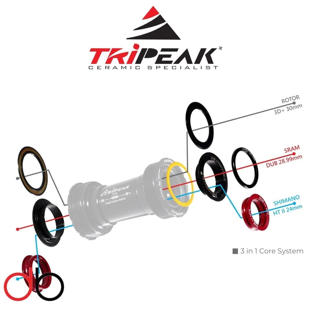 (BBF-091) Trục giữa BB TRIPEAK BB386 Twistfit cho giò Rotor 30mm, bạc đạn Ceramic Bearing
